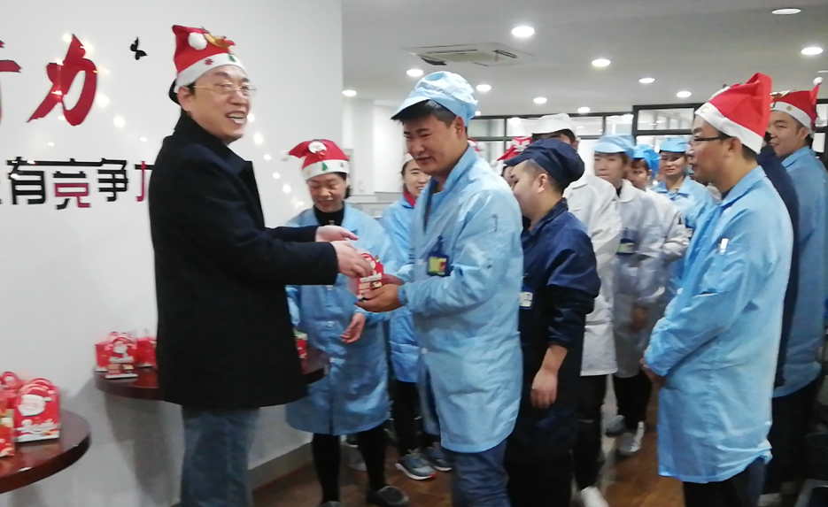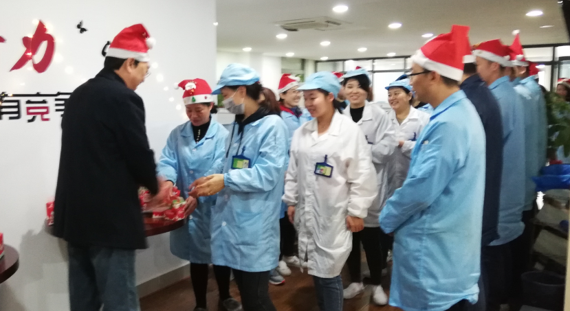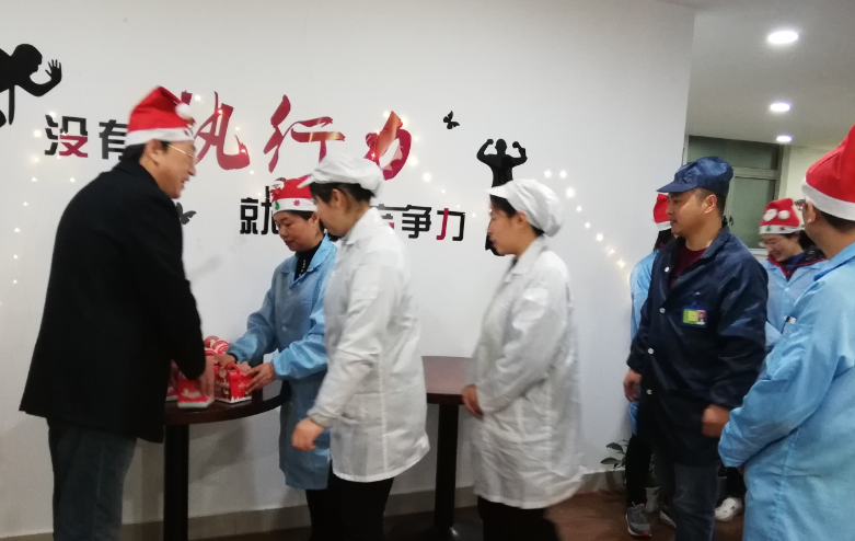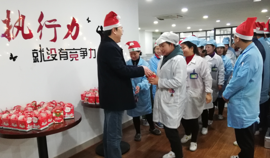 中午由孙总带领微立圣诞老人小组给大家来发放平安果,圣诞老人小组喊着“圣诞快乐,平安健康!”的口号,夹道欢迎大家来领取平安果哦!